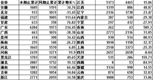另外,多個省份累計銷量出現(xiàn)降幅,分別為西藏、廣西、內(nèi)蒙古、寧夏、海南、上海、陜西、北京和四川。北京和上海出現(xiàn)降幅,主要是由于北京奧運會和上海世博會的召開,已經(jīng)提前透支了市場需求,今年銷量紛紛出現(xiàn)了下降。