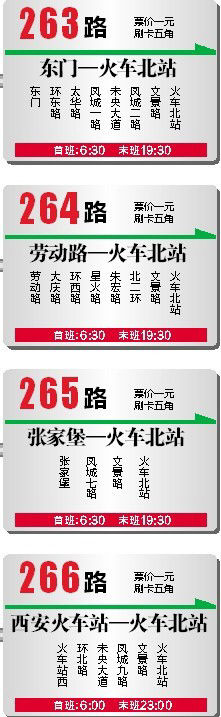 西安火車北站今日投入運(yùn)營(yíng),為方便外地旅客和市民能方便換乘公交車,市公交總公司263路、264路、265路、266路四條線路今日正式開(kāi)通。
