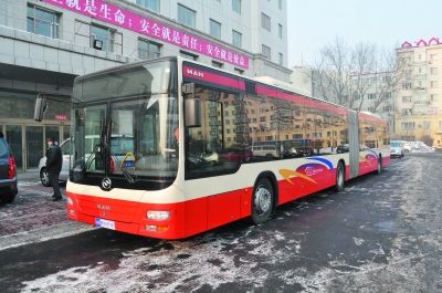 一種新型大容量、鉸接式、低踏板公交車即將在冰城投入使用。25日起相關(guān)人員對該車樣車在哈爾濱各主要街路進行運行實測,來確定合適的行車路線和在各線路投放的數(shù)量,不久該種車輛將成為哈爾濱市公交系統(tǒng)中的新車型。