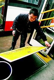 車內(nèi)采用一級(jí)踏步設(shè)計(jì),讓乘客可以一步就上車。此外,在后車門還配備了無障礙緩坡,可以讓坐輪椅、推著嬰兒車的特殊人群輕易上下車,非常人性化。但是與81路成都首批無障礙公交車不同的是,55路上的無障礙坡道是人工操作的,“自動(dòng)伸縮坡道開動(dòng)時(shí)可能會(huì)對(duì)行人造成危險(xiǎn),所以就是用人工的,隨用隨取,安全也不麻煩?!崩盥斦f,正對(duì)后門的手扶欄桿上還設(shè)置了求助按鈕,需要幫助的旅客只要輕輕一按,駕駛員就能進(jìn)行緊急處理。