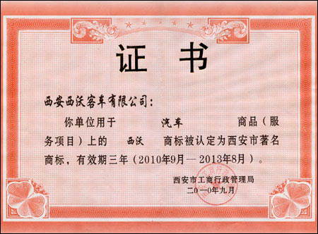 著名商標是一個企業(yè)產(chǎn)品實力和市場信譽的重要標志。西沃客車此次榮獲“汽車”類著名商標,是對我們在客車行業(yè)經(jīng)營情況的客觀評價?!拔魑帧边@一標志,不僅僅是我們做為客車制造企業(yè)的名稱,它更代表了質(zhì)量、安全、環(huán)保、性價比和值得信賴的高品質(zhì)。在當下公司大力拓展西部市場之時,西安市著名商標擁有更為廣泛的市場號召力,給予購車者更堅挺的信心與動力,對于企業(yè)的發(fā)展尤為重要。