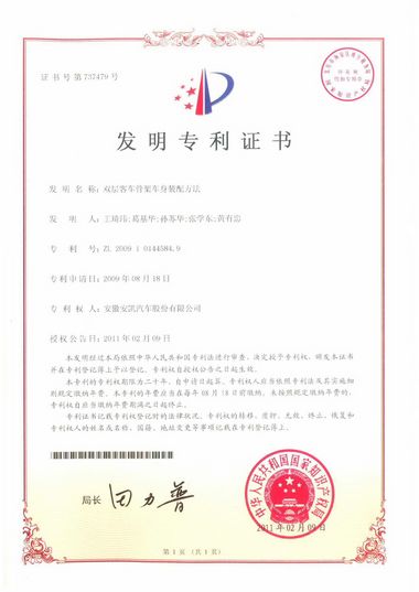 “雙層客車骨架車身裝配方法”專利是安凱股份公司2009年8月18日申請,2011年2月9日經(jīng)過國家知識產(chǎn)權(quán)局授權(quán)的,授權(quán)專利號為“ZL200910144584.9”。