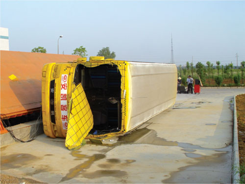 安凱客車一直堅持提升客車安全性。2005年6月,安凱與合肥工業(yè)大學聯(lián)合按GB/T17578-1998和ECE-R66標準在湖北襄樊汽車試驗場進行了中國客車第一家安全側翻試驗。從試驗架上翻轉落地后,除前窗玻璃破損外,側窗玻璃沒有破損,車身骨架沒有變形,客車內部空間沒有出現(xiàn)任何擠壓現(xiàn)象,客車的各部件完好無損,發(fā)動機運轉正常,車門開關自如,整車照常行駛。安凱客車的側翻成功,不僅表明中國自主開發(fā)的客車產品技術進入了世界前沿水平,而且在強度和客車重心設計上均達到國際標準,大大提高了乘客的安全系數。