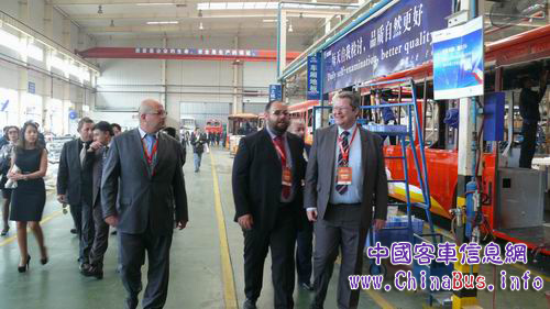 發(fā)布會(huì)后,來自馬耳他交通部官員、ARRIVA馬耳他公司總裁Keith Bastow、大金龍海外客戶在大金龍副總經(jīng)理朱國(guó)強(qiáng)的陪同下,參觀了大金龍的生產(chǎn)車間,海外客戶對(duì)大金龍整齊劃一、井井有條的車間表示贊揚(yáng)。