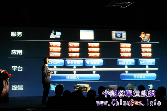 發(fā)布會現(xiàn)場,宇通集團(tuán)網(wǎng)絡(luò)信息總監(jiān)王勝軍為在場嘉賓詳細(xì)講解了“安節(jié)通”產(chǎn)品的主要構(gòu)成及其功能?!鞍补?jié)通”主要由車載終端設(shè)備、無線傳播媒介、服務(wù)器平臺三大部分組成,具有“安全、節(jié)能、高效、方便”的四大特征。車載終端設(shè)備包含多功能行車記錄儀和司機(jī)助手兩部分,前者是具有行駛記錄功能的衛(wèi)星定位裝置,是整個(gè)車載終端的“大腦” ,能識別車輛信號并通過無線設(shè)備傳輸?shù)椒?wù)器平臺,后者則是人車交流的平臺,集安全提示、故障診斷、維保管理、娛樂視聽、視頻監(jiān)控等十大功能于一體;無線傳播媒介是車輛與車輛之間、車輛與服務(wù)器平臺溝通交流的紐帶;服務(wù)器平臺可以收集記錄車輛發(fā)送的信息并將針對性地進(jìn)行分析,從而實(shí)現(xiàn)運(yùn)輸企業(yè)的高效運(yùn)營。