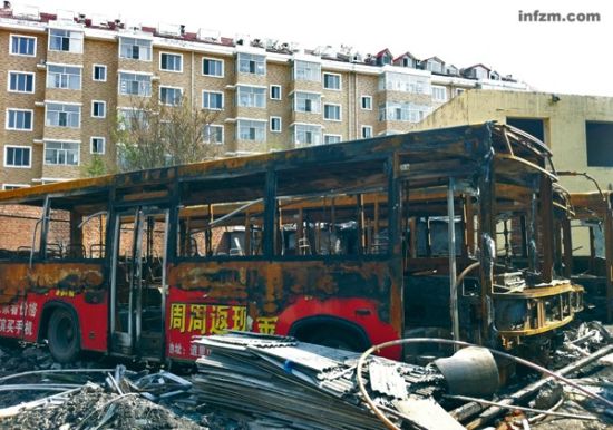 5月25日,一連串爆炸聲后,這些堪稱綠色示范的LPG公交車,毀于一旦。