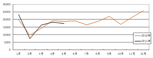 5月,客車市場表現(xiàn)不佳,根據(jù)中國客車統(tǒng)計信息網(wǎng)發(fā)布的數(shù)據(jù),客車銷量僅17336輛,同比下降7.26%(已連續(xù)兩個月出現(xiàn)負增長),1-5月,累計銷量82536輛,同比增幅呈逐月下降趨勢,目前僅剩1.19%,月度銷量曲線走勢持續(xù)低迷(如圖)。