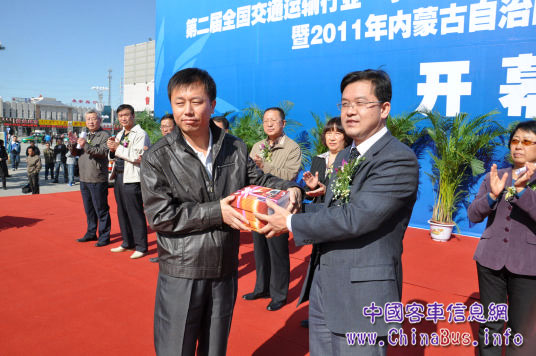 20日上午,活動(dòng)開(kāi)幕式在赤峰中昊運(yùn)輸集團(tuán)汽車站廣場(chǎng)盛大舉行,自治區(qū)交通運(yùn)輸管理局局長(zhǎng)蘇輝等當(dāng)?shù)匦袠I(yè)管理部門(mén)領(lǐng)導(dǎo)、自治區(qū)建筑建材公路運(yùn)輸工會(huì)副主席耿敏、自治區(qū)總工會(huì)領(lǐng)導(dǎo)、中昊運(yùn)輸集團(tuán)等運(yùn)輸企業(yè)領(lǐng)導(dǎo)、宇通集團(tuán)黨委副書(shū)記饒金有等出席儀式并發(fā)表講話。裁判員代表和選手代表分別進(jìn)行了宣誓。