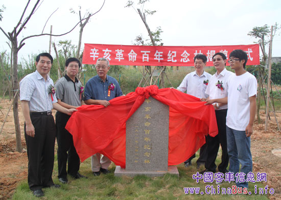 為紀(jì)念辛亥革命100周年,激發(fā)青年學(xué)生的愛國(guó)熱情,10月9日,由廈門市孫中山研究會(huì)倡議、大金龍贊助的“辛亥革命百年紀(jì)念林”種植活動(dòng)分別在廈門華廈職業(yè)學(xué)院和廈門雙十中學(xué)舉行,廈門市政協(xié)原主席蔡望懷,廈門市政協(xié)原副主席、廈門市孫中山研究會(huì)會(huì)長(zhǎng)莊威,廈門市政協(xié)副秘書長(zhǎng)、教科文衛(wèi)委主任徐楚炫,大金龍常務(wù)副總經(jīng)理陳志強(qiáng)以及兩所學(xué)校的師生代表共同參加了這一活動(dòng)。與會(huì)嘉賓分別在兩所學(xué)校揮鍬培土親手植樹并為“辛亥革命百年紀(jì)念林”揭碑,以種植百棵臺(tái)灣欒樹的特殊方式,深切緬懷革命先驅(qū),弘揚(yáng)“復(fù)興中華”的辛亥革命精神。