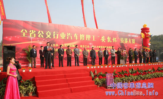 近日,安徽省公交行業(yè)汽車修理工“安凱杯”技能大賽在淮南市中北巴士有限公司舉行。省總工會副主席李維勇,交通運輸廳副廳長丁慶領(lǐng),淮南市委常委、常務(wù)副市長王誠,以及安凱客車董事長王江安等領(lǐng)導(dǎo)參加了此次大賽開幕式。