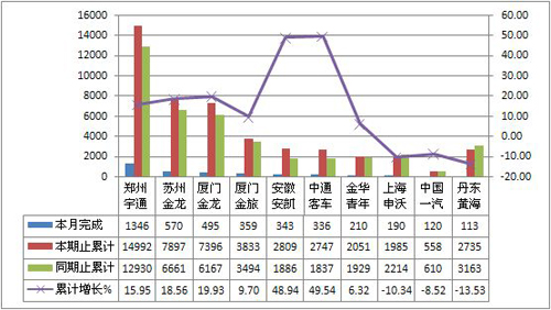 2011年10月客車非完整車輛生產(chǎn)6999輛,累計(jì)生產(chǎn)68451輛,銷售7307輛,累計(jì)銷售69851輛,同比累計(jì)增長(zhǎng)分別為-3.00 %和-0.12%。