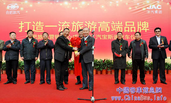 2011年12月8日,在合肥新亞汽車客運(yùn)公司的停車場(chǎng)內(nèi),伴隨著江淮汽車集團(tuán)董事長(zhǎng)左延安將金鑰匙交到合肥旅汽總經(jīng)理黃石林的手中,12輛嶄新的江淮寶斯通客車亦將正式入駐合肥客運(yùn)旅游汽車公司(以下簡(jiǎn)稱“合肥旅汽”)。