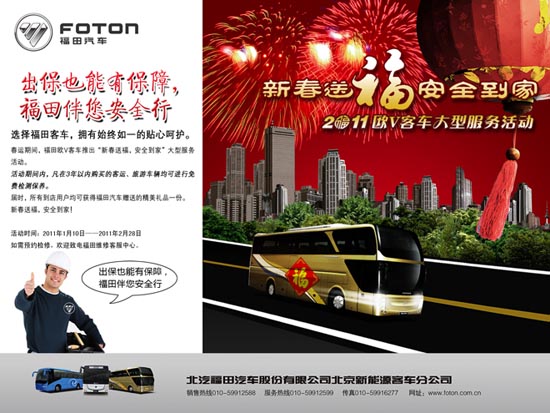 經(jīng)過(guò)多年建設(shè),福田歐輝客車現(xiàn)已建立了先進(jìn)的服務(wù)理念,完善了在全國(guó)各城市的服務(wù)、配件網(wǎng)絡(luò),成為行業(yè)中服務(wù)領(lǐng)先的品牌。2011年,福田歐輝客車將繼續(xù)以超前的服務(wù)理念與腳踏實(shí)地的行動(dòng)為客戶創(chuàng)造更多價(jià)值,“新春送福,安全到家”僅僅是為福田歐輝客車系列服務(wù)活動(dòng)拉開(kāi)了新春序幕!