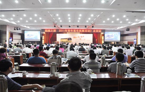 活動(dòng)首先由青年汽車集團(tuán)客車銷售總監(jiān)葉銀洪致開(kāi)幕辭,隨后青年汽車集團(tuán)總裁助理,客車銷售公司總經(jīng)理陳朝梁做主題發(fā)言,詳細(xì)介紹了青年客車的發(fā)展現(xiàn)狀、戰(zhàn)略規(guī)劃、品牌優(yōu)勢(shì)和巡展的新產(chǎn)品特點(diǎn)。據(jù)陳總介紹,本次巡展主要有以下亮點(diǎn):一是針對(duì)全承載、獨(dú)立懸掛前橋和A字梁后橋懸掛系統(tǒng)等青年客車傳統(tǒng)的經(jīng)典技術(shù)與車型的宣傳與推廣;二是針對(duì)新能源、行車寶、ESP和X-liner多功能精品客車等新技術(shù)與新車型的宣傳與推廣。最后,來(lái)自北京公交集團(tuán)總經(jīng)理助理徐國(guó)明、天津市長(zhǎng)途有限公司總經(jīng)理肖福祥、中旅旅游汽車公司總經(jīng)理李清滿在會(huì)上分享了他們長(zhǎng)期以來(lái)使用青年客車的體會(huì)和使用經(jīng)驗(yàn)。