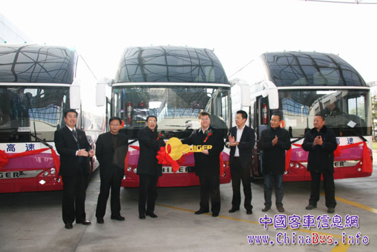 12月9日,蘇州金龍公司廠區(qū)內(nèi),11輛海格液化天然氣(LNG)客車披紅掛彩、整裝待發(fā),恰似待嫁的“新娘”?!靶履锏钠偶摇鄙綎|省交運(yùn)集團(tuán)也十分重視此批車輛的交付。山東交運(yùn)集團(tuán)黨委副書記楊國(guó)強(qiáng)帶領(lǐng)山東省電視臺(tái)、《齊魯晚報(bào)》社、《濟(jì)南時(shí)報(bào)》社、濟(jì)南市電臺(tái)、濟(jì)南市電視臺(tái)等山東主流媒體記者代表專程赴蘇州金龍迎接此批清潔能源客車。