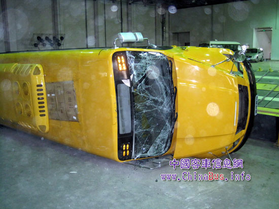 2月21日,在中國汽車技術(shù)研究中心,大金龍新款長頭“智慧校車”XMQ6900BSD4型長頭校車,順利通過專用校車強制性安全側(cè)翻試驗,試驗結(jié)果顯示:側(cè)翻試驗過程中,側(cè)翻臨界角為42.4度,遠高于新國標35度的要求,側(cè)翻后車身骨架幾乎沒有發(fā)生變形,車廂內(nèi)生存空間未被侵占,車尾部的應急門可以正常開啟,各項指標完全符合國家標準。讓記者驚訝的是,側(cè)翻后的校車,用吊車調(diào)正后,司機仍可發(fā)動車輛,并從容駛離現(xiàn)場。