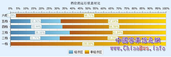 從上面四張圖可以看出,采用了“智驅”后,發(fā)動機的運行工況得到了明顯的改善,發(fā)動機工作在經濟區(qū)占比大大提高。而各檔位運行在經濟區(qū)的百分比也顯著增加,其最終的效果就是優(yōu)化了發(fā)動機和變速箱的運行工況、降低了油耗、也提高了車輛的使用壽命。