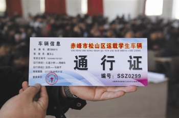 據(jù)了解,此類(lèi)校車(chē)通行證,近期將對(duì)松山區(qū)所有經(jīng)檢驗(yàn)合格的校車(chē)發(fā)放,只有取得該通行證的車(chē)輛才準(zhǔn)許在松山區(qū)指定學(xué)校、指定路線(xiàn)上接送學(xué)生。