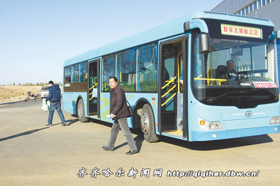 3月19日早8點(diǎn),黑龍江龍華汽車有限公司的30余名員工初次乘坐太陽能電電混合新能源客車,前往位于我市高新技術(shù)園區(qū)的新能源汽車產(chǎn)業(yè)園區(qū)做載客路試。懷著些許驚喜、新鮮、興奮,記者也隨行一同踏上嶄新的淺藍(lán)色太陽能客車,進(jìn)行一番體驗(yàn)采訪。