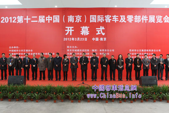 原建設(shè)部副部長(zhǎng)趙寶江、全國(guó)政協(xié)常委九三學(xué)社中央副主席賴明、住房與城鄉(xiāng)建設(shè)部城建司副司長(zhǎng)李如生、南京市政府副秘書長(zhǎng)張啟連,以及商務(wù)部、南京市交通局等政府要員;中國(guó)城市規(guī)劃協(xié)會(huì)、中國(guó)城市公共交通協(xié)會(huì)、中國(guó)汽車工程學(xué)會(huì)、中國(guó)旅游車船協(xié)會(huì)等行業(yè)機(jī)構(gòu)負(fù)責(zé)人;北京、天津、昆明、武漢、長(zhǎng)春和杭州、寧波、吉林、深圳等市公交集團(tuán)總公司領(lǐng)導(dǎo),以及金旅客車、濰柴亞星、韓國(guó)錦湖輪胎等客車和零部件企業(yè)代表逾20位特邀嘉賓一同出席了展會(huì)開幕式。