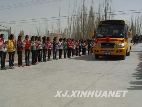 “前兩天就聽說(shuō)上面為我們學(xué)校配校車了,今天終于見(jiàn)到了,心里特別高興,以后回家再也不用愁坐不上車了,爸爸媽媽也不用擔(dān)心我的安全了”且末縣闊什薩特瑪鄉(xiāng)小學(xué)三年級(jí)蘇比努爾.吐爾遜對(duì)筆者說(shuō)道。