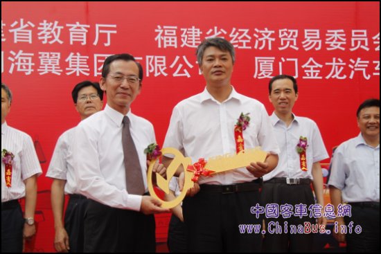 大金龍總經(jīng)理郭仁祥向平潭綜合實驗區(qū)教育局代表交接校車金鑰匙