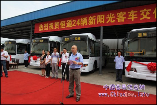 7月18日上午,“鄂州公交/ 恒通24輛新陽光客車交付儀式”在恒通客車工業(yè)園內(nèi)隆重舉行。儀式上, 恒通客車黨委副書記兼副總經(jīng)理蔣更新發(fā)表了致辭,并向鄂州公交王吉安移交了恒通24輛新陽光客車的金鑰匙,隨后鄂州市公共汽車公司副總經(jīng)理王吉安作了精彩的發(fā)言,并與恒通客車銷售公司總經(jīng)理程文理簽訂了追加16臺新陽光客車的采購合同,這標(biāo)志著恒通客車將再次服務(wù)鄂州公共交通,為鄂州公交事業(yè)的發(fā)展增光添彩。