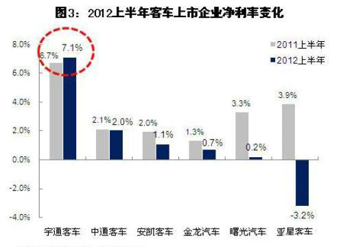凈利率:宇通客車凈利率最高且唯一有提升