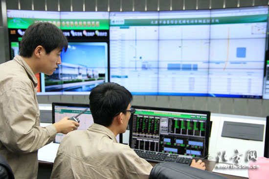 操控室里工作人員正在監(jiān)控?fù)Q電機(jī)器人的作業(yè)情況