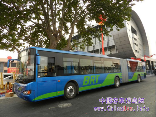 運(yùn)行在BRT一號(hào)線上的是蘇州金龍海格KLQ6181GQ大容量鉸接式公交客車,簡稱BRT客車,該批BRT搭載進(jìn)口康明斯燃?xì)獍l(fā)動(dòng)機(jī),使用液化天然氣(LNG)作為燃料,并有進(jìn)口ZF自動(dòng)變速箱、轉(zhuǎn)向機(jī)、車橋、空氣懸架等。其頂級(jí)的配置、典雅的外形、超大的容量、人性化的設(shè)計(jì)、舒適的車內(nèi)環(huán)境、良好的操控性、高標(biāo)準(zhǔn)的安全、節(jié)能、環(huán)保性能等堪稱國內(nèi) “城市公交動(dòng)車”,據(jù)悉,這是目前江蘇省內(nèi)首批投入運(yùn)行的歐五排放燃?xì)釨RT客車。