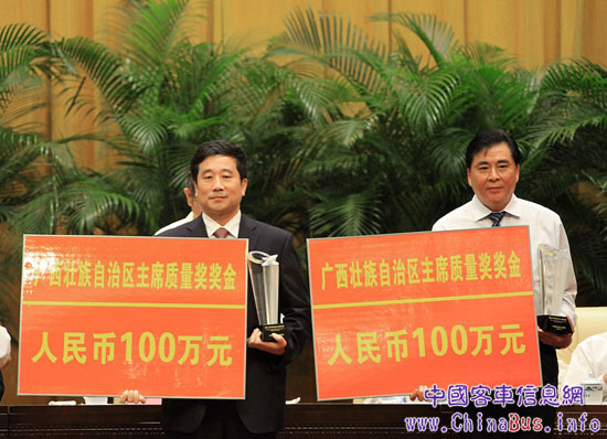 在10月29日召開的全區(qū)質(zhì)量興桂工作暨首屆主席質(zhì)量獎表彰大會上,自治區(qū)黨委書記、自治區(qū)人大常委會主任郭聲琨,國家質(zhì)量監(jiān)督檢驗檢疫總局副局長劉平均等領(lǐng)導出席大會。會議由自治區(qū)黨委副書記、自治區(qū)政府主席馬飆主持,自治區(qū)副主席藍天立宣讀表彰文件。玉柴集團公司董事局主席、股份公司董事長晏平代表玉柴股份公司接受了自治區(qū)領(lǐng)導的頒獎。
