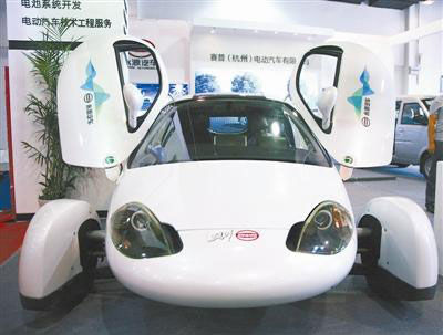 8月10日在2012中國(杭州)國際新能源汽車產(chǎn)業(yè)展覽會上展出的造型獨特的純電動概念車。李晨韻攝