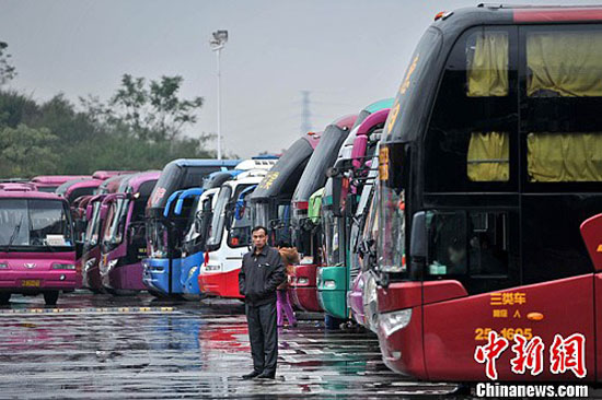 1月6日,廣西南寧一處客運(yùn)車站停滿了大客車。