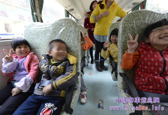 蒲公英幼兒園的小朋友們高高興興地坐上金龍“智慧校車”