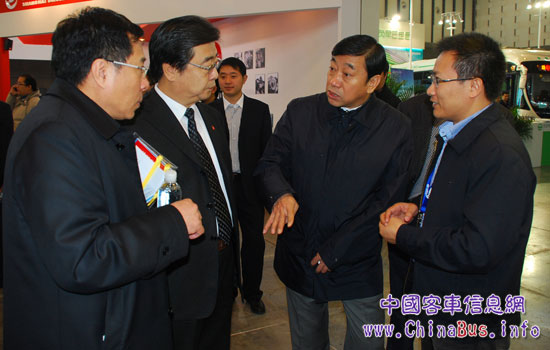 銷(xiāo)售公司副總經(jīng)理周傳武為天津公交黨委書(shū)記于秉華介紹玉柴NG客車(chē)動(dòng)力技術(shù)