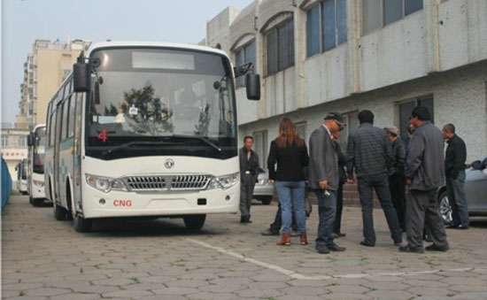 整裝待發(fā)的東風(fēng)CNG公交車