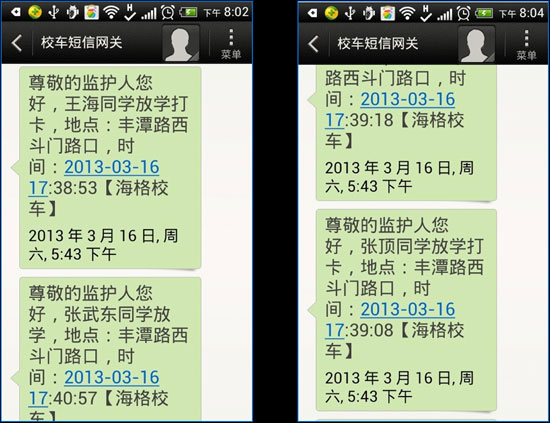 為了掌握學(xué)生上車下車情況,海格新國標(biāo)校車標(biāo)配上下車刷卡系統(tǒng),學(xué)生乘車時要刷卡,下車時也要刷卡。這些刷卡信息都會被記錄下來,學(xué)生到校后,家長就能收到一條學(xué)生安全到校的提示。同樣,學(xué)生回家安全下車后,學(xué)校也能收到反饋。新校車還有一個“防學(xué)童遺忘報警系統(tǒng)”, 該系統(tǒng)的報警器與發(fā)動機(jī)和車門相連,一旦駕駛員關(guān)閉發(fā)動機(jī)、打開車門,系統(tǒng)就會發(fā)出報警。此時,駕駛員必須從車輛前部走到尾部,按下安全巡視按鈕,才能解除報警、正常關(guān)門下車。這個過程也實現(xiàn)了司機(jī)從車廂前部到后部的巡視,避免學(xué)童被遺忘在車上,發(fā)生事故。