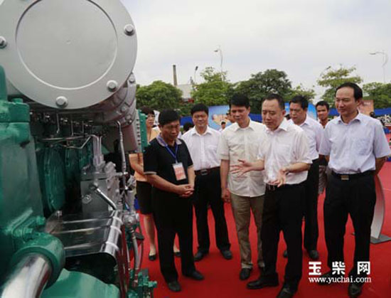 9月7日,第十屆中國(玉林)中小企業(yè)商機博覽會期間,中共玉林市委書記、市人大常委會主任金湘軍,市政協(xié)主席劉子福,市人大常委會副主任伍科雄,市委副書記李常官,市常務副市長朱朝霞等領導到玉柴展館參觀,觀看了玉柴的國五氣體機、兩級增壓發(fā)動機、船電發(fā)動機等產(chǎn)品。