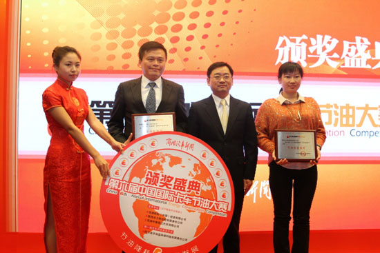 佳通輪胎商用車(chē)胎部高級(jí)經(jīng)理蔡世盛(圖左二)代表佳通領(lǐng)取“節(jié)油輪胎獎(jiǎng)”