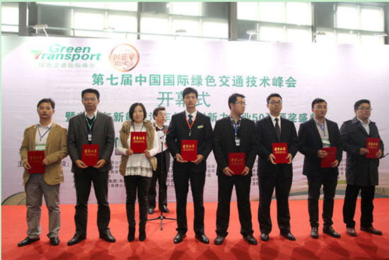 11月27日,展會開幕式及「NEV TOP50」2013節(jié)能與新能源汽車行業(yè)創(chuàng)新力企業(yè)50強榜單發(fā)布及頒獎典禮準時在上海世博展覽館舉行。開幕式伊始,首先由展會主辦方代表進行致辭,為展會拉開帷幕。致辭中,主辦方代表誠摯表達了對參與此次展會的展商及本行業(yè)精英代表的謝意,感謝他們對于此次展會的大力支持及參與。緊隨其后展會開幕式第二項,由大會主辦方宣布并進行了「NEV TOP50」2013 節(jié)能與新能源汽車行業(yè)創(chuàng)新力企業(yè)50強榜單發(fā)布及頒獎典禮,此次頒獎典禮中,包括湖南南車時代電動汽車股份有限公司、上海申沃客車有限公司、上海申龍客車有限公司、江蘇常隆客車有限公司、東風康明斯發(fā)動機有限公司等公司進入本年度的50強榜單。同時,包括福建省福工動力技術有限公司、合肥威爾燃油系統(tǒng)有限責任公司、張家港富瑞特種裝備股份有限公司、河南速達電動汽車科技有限公司、中航鋰電(洛陽)有限公司、蘇州瑞佳新能源動力科技有限公司、上海金翅鵬實業(yè)有限公司等企業(yè)榮膺“2013 年度節(jié)能與新能源汽車行業(yè)十大創(chuàng)新產品獎”。開幕式及頒獎典禮在得獎企業(yè)與嘉賓的合影留念及不斷的掌聲中結束。