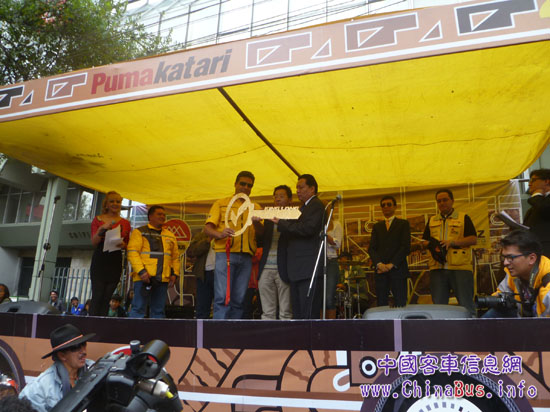 拉巴斯市長(zhǎng)(左三)接過交車金鑰匙
