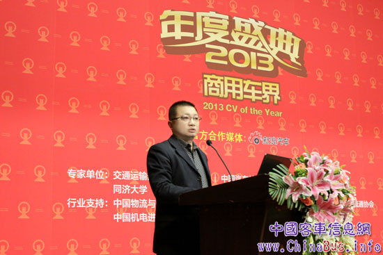 2014年1月11日,“商用車界年度盛典”在北京郁金香溫泉度假村盛大舉行, “商用車界年度論壇”同期舉行。來自中央部委、國際、國內(nèi)主流商用車企業(yè)、主流媒體等260多人參加此次盛會 。與會領(lǐng)導(dǎo)及專家梳理過去一年中的行業(yè)發(fā)展動態(tài),洞察未來發(fā)展之政策取向,并向與會者介紹全行業(yè)最具代表性的新產(chǎn)品、新技術(shù)。