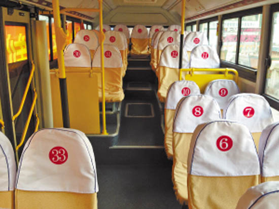 定制公交不設(shè)站票,一人一座。昨天記者在車上看到,工作人員已在座椅靠背上貼上了號(hào)碼,成功報(bào)名的市民,每人將領(lǐng)到一張乘車卡,上面的數(shù)字與座椅數(shù)字相對(duì)應(yīng)。