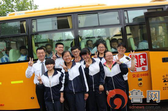 魯網(wǎng)新農(nóng)村6月11日訊(記者 馬杰 通訊員 崔克臣)6月10日,萊西市河頭店鎮(zhèn)中心中學(xué)即將畢業(yè)參加明天中考的的考生在乘坐最后一次校車離校前,拉著照管員和駕駛員合影。