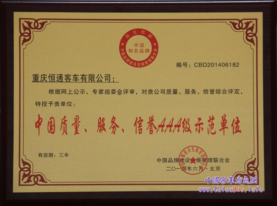 中國品牌建設(shè)發(fā)展管理聯(lián)合會(huì)是從事企業(yè)品牌認(rèn)證服務(wù)的專業(yè)性社團(tuán),聯(lián)合會(huì)在全國范圍內(nèi)開展“中國城市客車十大知名品牌”評選活動(dòng),旨在通過權(quán)威媒體的引導(dǎo)和影響,帶動(dòng)廣大民眾參與品牌的監(jiān)督和評選,在全社會(huì)營造推動(dòng)優(yōu)質(zhì)品牌的健康發(fā)展。正因恒通客車長期以來在提升品牌知名度和可信度、完善產(chǎn)品品質(zhì)和服務(wù)上的不懈努力,本次評選贏得了廣大用戶、專家評委的一致好評,一舉斬獲兩項(xiàng)殊榮。