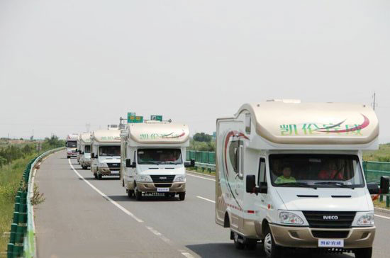 從北京到內(nèi)蒙古赤峰,沿京承高速,全程超過6個(gè)小時(shí)的路途。當(dāng)夏日陽光灑落車身,凱倫賓威房車隊(duì)格外耀眼,在旅途中,巨無霸ZK5240XSW車型,引無數(shù)粉絲紛紛合影。漫長的行程似乎有了房車的陪伴,團(tuán)員們笑聲不斷。隨著車隊(duì)把城市甩于身后,鄉(xiāng)村風(fēng)光逐漸顯現(xiàn)。大片碧綠的玉米地以及間或其中的小樹林現(xiàn)于窗外,一種撲面而來的土地的芳香,快門聲不絕于耳。