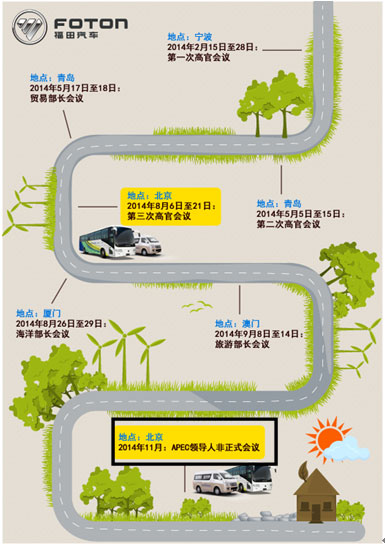 在2014年11月北京懷柔將舉辦的領(lǐng)導(dǎo)人非正式會(huì)議,福田汽車將繼續(xù)作為保障用車全程服務(wù)APEC會(huì)議。福田汽車APEC專屬服務(wù)團(tuán)隊(duì)隨時(shí)待命,全力確保APEC會(huì)議的順利進(jìn)行。
