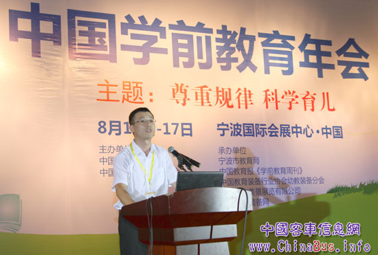 海格校車產(chǎn)品經(jīng)理李春在中國學前教育年會上作介紹