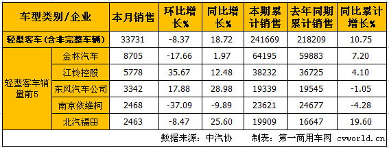 輕型客車銷量情況: