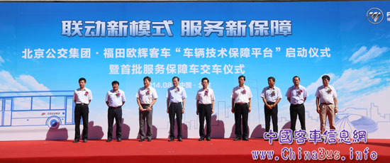 8月26日,北京公交集團(tuán)·福田歐輝客車“車輛技術(shù)保障平臺(tái)”啟動(dòng)儀式暨首批服務(wù)保障車交車儀式在北京舉行,活動(dòng)以“聯(lián)動(dòng)新模式服務(wù)新保障”為主題,吸引了來自北京公交集團(tuán)、福田汽車集團(tuán)、行業(yè)專家、媒體等約150人參與,會(huì)上,福田汽車首批贈(zèng)送北京公交集團(tuán)20輛福田蒙派克E級(jí)商務(wù)車,用于構(gòu)建和完善 “車輛技術(shù)保障平臺(tái)”體系的建設(shè)。行業(yè)專家表示,歐輝客車首創(chuàng)了聯(lián)合公交公司共同打造“車輛技術(shù)保障平臺(tái)”體系的服務(wù)創(chuàng)新模式,這種“聯(lián)動(dòng)服務(wù)”的創(chuàng)新模式必將為構(gòu)建高效、綠色、安全的城市交通循環(huán)系統(tǒng),打通關(guān)鍵一環(huán)。